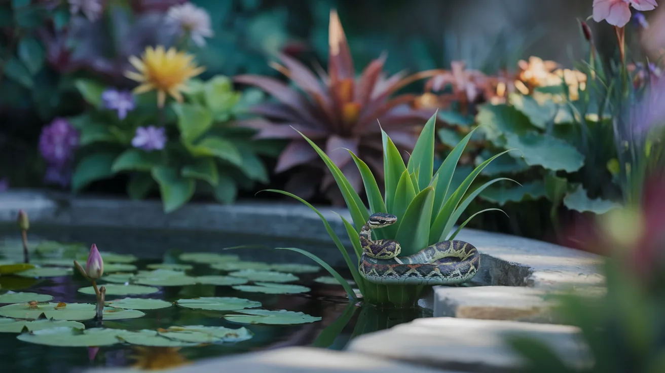 Najgorsze nie jest samo lustro wody, tylko to, co dzieje się tuż obok. Gęste rośliny, sterta liści, kamienie i nierówne obrzeża tworzą zasłonę. Wąż podchodzi, znika w cieniu i czujesz, że przegrywasz z własnym ogrodem.